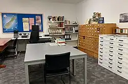 By 1978 the museum had a paid staff member, Mrs M. E. Kenny, who worked four hours a week, increasing to six hours a week by 1987.[9] She was replaced that year by Rita Wright who with the assistance of the Historical Society committee catalogued the collection, initially on a cross-referenced card system and eventually databasing it in PastPerfect.[9][10] Ashburton Museum heavily depended on Lynda Wallace of the museum liaison service which operated through the 1980s and early 1990s.[10] Wright continued as curator for almost 20 years, and was succeeded by Michael Hanrahan in December 2006.[12] Ashburton DIstrict Council took over management of the museum in 2014 with the opening of the Heritage Centre.[5]