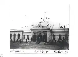 Ashgabat railway station was constructed in 1888, based on a design by academician Ludwig Urlaub. It was later reconstructed during the Soviet era, but was completely demolished in 1948 by the Ashgabat earthquake. It was rebuilt in 1950 on the foundations of the old railway station. Adjacent to the Ashgabat railway station, the House of Culture for Railway Workers was built between 1950 and 1952, designed by architect Elizaveta Khelaia.[5]