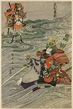 Ashikaga Tadayoshi (足利 直義; 1306 – March 13, 1352, Kamakura, Japan)[1] was a general of the Northern and Southern Courts period (1337–92) of Japanese history and a close associate of his elder brother Takauji, the first Muromachi shōgun. Son of Ashikaga Sadauji and Uesugi Kiyoko, daughter of Uesugi Yorishige, the same mother as Takauji, he was a pivotal figure of the chaotic transition period between the Kamakura and Muromachi shogunates.[2] Tadayoshi is today considered a military and administrative genius and the true architect of many of his elder brother's successes.[3] In contemporary chronicles he is rarely called with his name, but is instead called either gosho (御所) or Daikyū-ji-dono (大休寺殿) from the name of his family temple.[4][5] His posthumous name was Kozan Egen (古山慧源).[5]