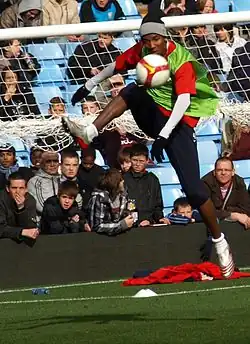 On 23 January 2007, Aston Villa completed the signing of Young for a fee of £8 million (rising to £9.65 million with add-ons).[13] At the time, this was the highest fee Aston Villa had ever paid for a player.[14] On 31 January 2007, he scored on his debut for Villa at St James' Park against Newcastle United, but Villa went on to lose 3–1.[15] Young started the 2007–08 season well, receiving several Man of the Match awards, culminating in a call-up to the England squad.[16]