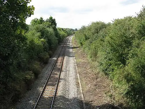 Trains on the Cotswold Line pass the site. Geograph [1]