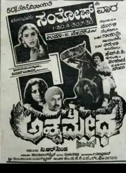 Ashwamedha is a 1990 Indian Kannada language action film directed by C. R. Simha. It stars Kumar Bangarappa and Geethanjali with Srividya, Srinath, Balakrishna, Avinash and Ramesh Bhat essaying other important roles.