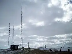 Aspen Mountain also houses repeaters used by local highway patrol and local police and fire services for Sweetwater County,[1] which are also present on nearby Wilkins Peak. If the local emergency repeaters on Aspen Mountain fail, they are automatically switched to the Wilkins Peak repeaters, and vice versa. The mountain also houses amateur radio repeaters,[2][3] and a long range radar station (operated by the FAA) is the mountain's most visible feature.