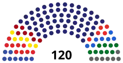 The assembly is composed of 120 deputies who are proportionally elected to four-year terms by secret ballot. The current assembly was elected in 2023 provincial elections. The assembly elects a president (speaker) who presides over the sessions, currently Juhász Bálint of the Alliance of Vojvodina Hungarians.