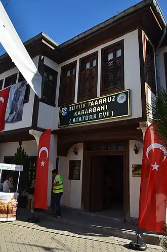 The Atatürk's House, also known as Great Offensive Headquarters, (Turkish: Atatürk Evi (Büyük Taarruz Karargahı)) is a historic house museum in Şuhut district of Afyonkarahisar Province, Turkey, which was used as temporary headquarters by then Commander-in-Chief Mustafa Kemal Pasha (Atatürk) right before the Great Offensive in August 1922. The museum was established in 2004 following restorations.[1][2]