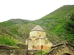 The Ateni Sioni Church (Georgian: ატენის სიონი) is an early 7th-century Georgian Orthodox church in the village of Ateni, some 10 km (6.2 mi) south of the city of Gori, Georgia. It stands in a setting of Ateni gorge in the Tana River valley known not only for its historical monuments, but also for its picturesque landscapes and wine. The name "Sioni" derives from Mount Zion at Jerusalem. Ateni is the tetraconch church, typical for the period. Its frescoes are one of the best examples of the Georgian painting.
