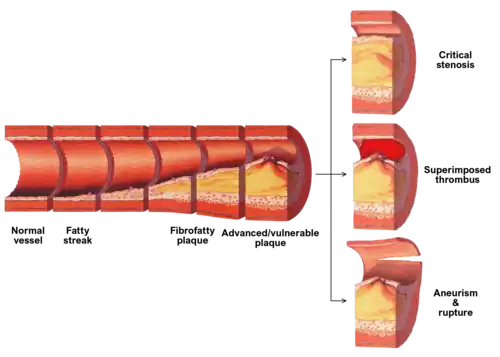 - ^ Finn AV, Nakano M, Narula J, Kolodgie FD, Virmani R (July 2010). "Concept of vulnerable/unstable plaque". Arteriosclerosis, Thrombosis, and Vascular Biology. 30 (7): 1282–1292. doi:10.1161/ATVBAHA.108.179739. PMID 20554950.