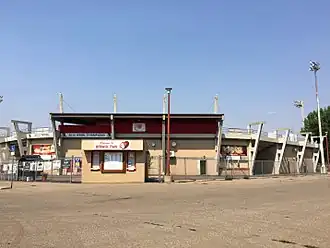 After being damaged heavily twice due to two major Southern Alberta floods in 1995 and 2013, a berm was built around the ballpark outfield. There is a paved walking path beyond the outfield and on top of the berm where the field of play is in view during live games.[3][4][5]