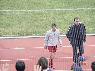 In the first year after its return to the big division, AEL did the "bang" bringing in the summer of 2005 directly from the English courts the UEFA Euro 2004 champion and former captain of the Greece national football team, Nikos Dabizas. A move that was made to shield the defense while sending the message that AEL did not return to Super League just to participate in the league, but to star. Along with AEL returned also its supporters, giving impressive "presence" with tours admired throughout Greece. Toumba, Kaftanzoglio, Pankritio, Kleanthis Vikelidis, Zosimades...Comfortably stayed 8th, and a European opportunity occurred through Intertoto Cup, exploiting the weakness of PAOK to fulfill the criteria[25] of UEFA. A European return, with two games against the Turkish Kayserispor[26][27] did not bring the coveted Cup Qualification to UEFA Cup (within 0–0 draw, and a 2–0 defeat in Kayseri), but it was clearly an omen of a great European return, which was meant to be completed one year later. The 2006–07 season was one of its most successful, but also one of the most controversial in the club's modern history. On the one AEL rose again to the throne of Greek Cup Winners, and on the other flirted with relegation, eventually managing to secure salvation in the last matchday.