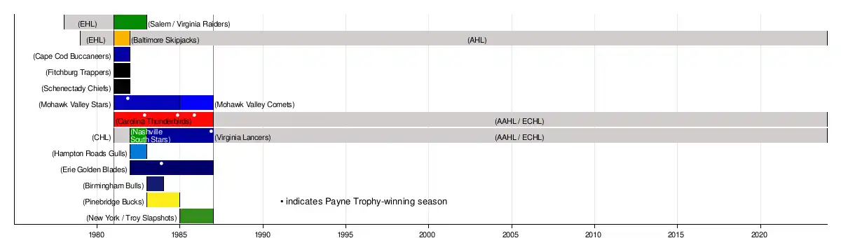 - 1983–1990: Virginia Lancers (ACHL/AAHL/ECHL)