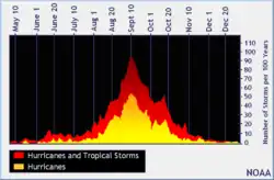 - ^ NOAA. Graph showing average activity during the hurricane Season. Retrieved on 2006-10-28.