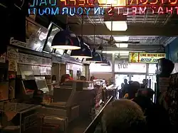 Attman's Delicatessen was first opened on Lombard Street in East Baltimore in 1915. Lombard Street was known as Corned Beef Row, once the heart of Jewish Baltimore and known for its many Jewish delis. The founder of the deli, Harry Attman, was a Jewish immigrant from a village near Kyiv, who settled in Baltimore in 1920 after learning the grocery trade in Providence, Rhode Island. His wife Ida was from Poland. The Attmans were religious and kept a kosher kitchen at home, but the corned beef and beef tongue came from non-kosher meat and the deli was never kosher. The deli was open during Shabbat, even during World War II when local rabbis tried to enforce Shabbat observance. Harry died in 1968 and his son Seymour took over the family business. By the 1970s, the clientele at Attman's Delicatessen had become predominantly non-Jewish.[2]