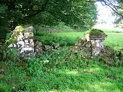 Auchans Castle,[1] House, House of Auchans[2] or Old Auchans, is a mock military mansion, Category A listed,[3] T-plan building of a late 16th-century date converted to the L-plan during the early-to-mid-17th century; its ruins stand about 1 km W of Dundonald, South Ayrshire, Scotland. Parish of Dundonald. It was held at various times by the Wallace, Cochrane and Montgomerie families.