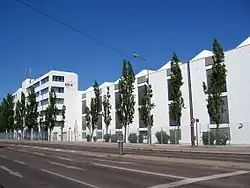 As the seat of a factory of the powerful Messerschmitt corporation, Haunstetten became a wartime production center during World War II. Two large production centers, Werk III and Werk IV were located in Haunstetten, in what is now Universitätsviertel, although now these production facilities belong to EADS and DaimlerChrysler Aerospace. The number of production facilities located in Haunstetten led to pressure on the local housing market as production laborers, researchers and engineers came from all over Germany to work for the Messerschmitt facilities. This led to the construction of the Messerschmittsiedlung (English: Messerschmitt settlement), which was completed in 1937 and was expanded in 1939. This influx of workers also lead to a rapid increase of the resident population of Haunstetten, which increased from 3,000 in 1933 to 8,000 in 1945. Although only 6,000 worked at the Messerschmitt facilities in 1936, this number grew to 9,000 by 1939 and by 1944 the worker population had reached 18,000 - of which 47% were either foreign or forced laborers. Three barracks were built for forced laborers to live in. Further forced labor for the Messerschmitt production facilities was obtained from a satellite of Dachau concentration camp, which was located near a gravel quarry close to the border with Inningen.