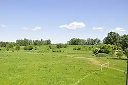 The eastern portion of Augustówka consists of the single-family housing, as well as green zones, consisting of allotment gardens, meadows, ponds and fields. It also includes Czerniakowskie, and Wilanowskie oxbow lakes near the Vistula river, which is part of an area known as Siekierki Arc.[2]