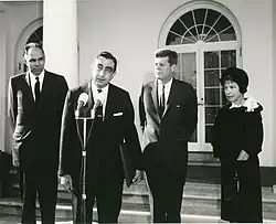 During 1932–1933, Mici spent two years at the University of Pittsburgh with a scholarship to study sociology and psychology earning her Masters in Personnel Work in 1933.[4] When she returned to Hungary, she married her longtime friend, Teller, on February 24, 1934.[1] The Tellers emigrated to the United States in 1935, after Russian-born physicist George Gamow invited Edward to teach at the George Washington University. She and her husband became American citizens on March 6, 1941. The Tellers had two children: Paul (b.1943) and Wendy (b.1946).[1]