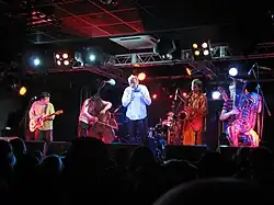 Auktyon was particularly popular from 1987 through 1995, but became less active in the late 1990s when Fyodorov began to produce records for Leningrad.[1] The group continues to play together and to release new albums. They toured the United States in 2006[2] in support of their first US release, the album Pioneer. The group returned to the US in 2008 when they released the album Girls Sing.[3][4][5]