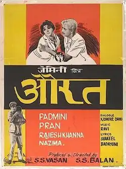 Aurat (lit. 'Woman') is a 1967 Indian Hindi-language film produced and directed by S. S. Balan and S. S. Vasan. It is a remake of the 1966 Tamil film Chitthi. It stars Padmini, Feroz Khan, Rajesh Khanna, Pran, Nazima, O. P. Ralhan in pivotal roles, along with Kanhaiyalal, David, Lalita Pawar, Leela Chitnis in supporting roles. The film's music is by Ravi. The film is totally revolving around the character of Parvati's life. The film deals with how Parvati (played by Padmini), who is in true love with Anand (Feroz Khan), is forced by circumstances to marry Manoharlal (Pran) against wishes of her brother Suresh (Rajesh Khanna) and later is tested by life to show whether after marriage to Manoharlal, she is truly affectionate to Manoharlal.