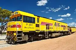 Initially, trains in Western Australia operated under the Australia Western Railroad name, with AWR logos being applied to locomotives in the orange, black and yellow of Genesee & Wyoming. With ARG's involvement with the Asia Pacific Transport Consortium building the Alice Springs to Darwin line, resulting in some locomotives operating construction trains on the line receiving Australia Northern Railroad logos, it was decided to rebrand all ANR, ASR and AWR operations under the Australian Railroad Group banner from August 2002.[3]