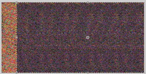 The wall-eyed depth map example autostereogram to the right encodes 3 planes across the x-axis. The background plane is on the left side of the picture. The highest plane is shown on the right side of the picture. There is a narrow middle plane in the middle of the x-axis. Starting with a background plane where icons are spaced at 140 pixels, one can raise a particular icon by shifting it a certain number of pixels to the left. For instance, the middle plane is created by shifting an icon 10 pixels to the left, effectively creating a spacing consisting of 130 pixels. The brain does not rely on intelligible icons which represent objects or concepts. In this autostereogram, patterns become smaller and smaller down the y-axis, until they look like random dots. The brain is still able to match these random dot patterns.