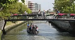 Tourism is also important for the economy.[20] The old town centre, with its Art Nouveau and Romanesque architecture[21] and "gondolas" (barcos moliceiros once used for collecting moliço seaweed) plying the Ria de Aveiro canals, is referred to as "The Venice of Portugal" in some tourist brochures.[22][23]