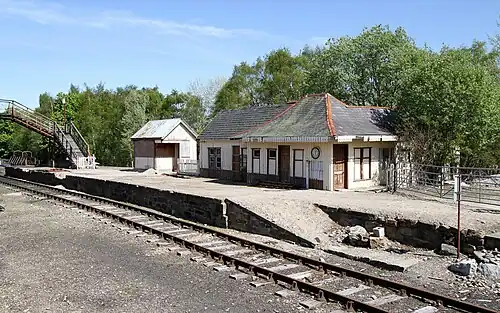 Aviemore (Speyside) railway station is an old station in Aviemore, Scotland that closed in July 1998. It was the main terminus on the Strathspey Railway which is still open as a heritage railway and tourist attraction. The station was built in the late 1970s from components from Dalnaspidal, a station on the Highland Main Line closed as part of the Beeching Axe. When the Strathspey Railway was founded, British Rail refused access to Aviemore railway station and the company was forced to construct its own terminus up the line in the railway yard.