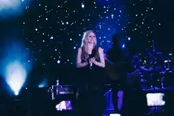Lavigne promoted the album with a series of live performances. First, she went to Los Angeles' famed Sunset Strip club, "the Viper Room", performing a range of tracks, including "17".[36] On September 21, 2013, Lavigne performed on the iHeart Radio Festival, performing "Here's to Never Growing Up", "Rock n Roll" and other hits.[37] In October 2013, Lavigne performed at "We Day 2013", which took place in Vancouver, British Columbia, Canada. She performed "Let Me Go" with Chad Kroeger, as well as "Girlfriend" and "Here's to Never Growing Up".[38] On November 5, 2013, during the album's release day in the United States, Lavigne performed "Let Me Go" and snippets of "Girlfriend" and "Sk8er Boi".[39] She also performed "Let Me Go" on The Katie Couric Show, on November 8, 2013[40] and on Conan, on November 11, 2013.[41] On December 4, 2013, Lavigne performed on Q102's Jingle Ball, singing "Here's To Never Growing Up", "Girlfriend", "Let Me Go" and "Sk8er Boi".[42]