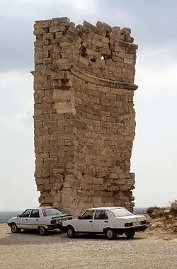 Up to 312, Thecla's cave was a secret pilgrimage site. At some date, a church was built into the cave. Aya Thekla, the more prominent church, was built on the hilltop in 460–470 by the Byzantine emperor Zeno the Isaurian (reigned 474–475).[4] The church and other related buildings, such as a bath, are now in ruins, the only standing element being a part of the apse.[2] The cave and cistern to the north of the cave are also partially standing.