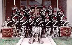 In 1961, the Ayrshire Yeomanry paraded at Culzean Castle and were presented with their First Guidon bearing the Honours which had been hard won.[37] The Ayrshire Yeomanry continued as an independent Regiment until 1969 when, in common with most of the Yeomanry Regiments, it was reduced to a Cadre of just a few men.[3] On 1 April 1971, this cadre gave rise to two new units; B Squadron of the 2nd Armoured Car Regiment, later renamed the Queen's Own Yeomanry, at the former Regimental Headquarters in Ayr and 251 Squadron of 154th (Lowland) Transport Regiment in Irvine with no affiliation to the Ayrshire Yeomanry lineage.[3] In 1992, the squadron was transferred to the newly formed Scottish Yeomanry.[3]