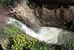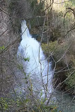 During the rainy winter months the water-flow is strongest. During the summer months, water is diverted for crop irrigation close to the stream's springs. Differences in elevation form waterfalls along the stream. These falls were declared a nature reserve,[9] and include: