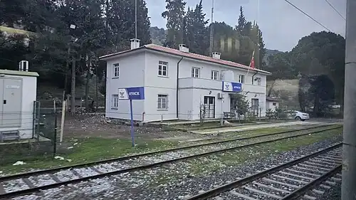 Ayvacık railway station (Turkish: Ayvacık istasyonu) a station on the İzmir-Afyon railway situated on the southern bank of the Gediz River. It is owned by the Turkish State Railways which operates several daily trains through the station. Since ridership is low, the station is mainly used as a siding to allow trains to pass one-another.