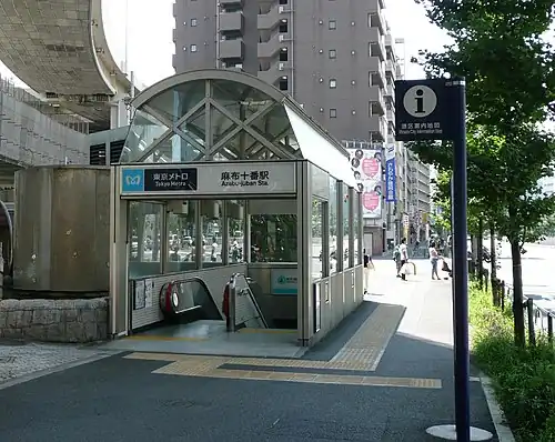 Azabu-juban Station (麻布十番駅, Azabu-jūban eki) is the name of two subway stations in Minato, Tokyo, Japan, one operated by Tokyo Metro and the other by Toei Subway.