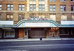 A massive three-ton chandelier dominates the theater lobby. Added to the theatre in 1929, the chandelier has been completely restored by the grandson of the original designer.[5] The chandelier was installed the same day the stock market crashed in 1929.