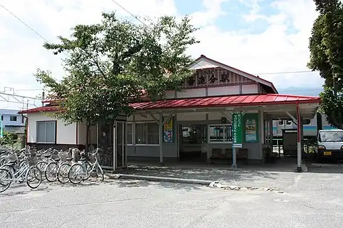 - ^ a b c d e Shinano Mainichi Shimbun (2011). Nagano Prefecture All Railway Stations, revised edition (長野県鉄道全駅 増補改訂版) (in Japanese). Shinano Mainichi Shinbun Publishing. p. 103. ISBN 9784784071647.