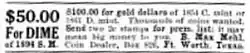 Mehl did not limit himself to advertisements in the numismatic press. Beginning in 1904, he placed classified ads in the Fort Worth Telegram. In 1906, he became the first coin dealer to advertise in the national non-numismatic press, with five lines in Collier's magazine,[5] at an expense of $12.50. This proved successful as an advertising strategy,[9] helping to transform coin collecting, once a niche hobby for the wealthy and for students of art and archeology, into a pastime for the masses.[9]