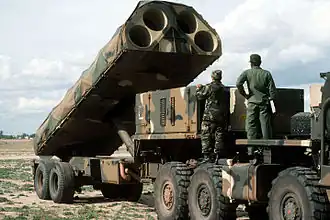 BGM-109G Gryphon transporter–erector–launcher (TEL) showing 4 missile launch tubes | |