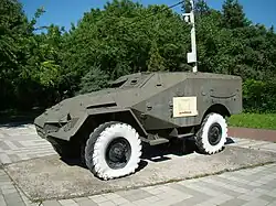- BTR-40 converted into an armoured car armed with a 40 mm gun in an angular turret on top of the superstructure inside the troop compartment, it also has four smoke grenade dischargers on both sides of the hull. It has a searchlight on the left hand side of the hull. It is intended to be used for fire support.