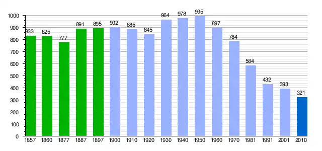 As of January 1, 2010 the population of the town rose to 321 inhabitants, 156 men and 165 women.