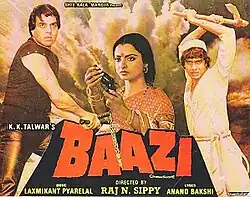 Baazi is a 1984 Indian Hindi-language action film directed by Raj N. Sippy. The film stars Dharmendra, Mithun Chakraborty, Rekha, Ranjeeta, Shakti Kapoor, Madan Puri and Mac Mohan.