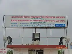 Babasaheb Bhimrao Ambedkar University (informally known as BBAU) is a Central University situated in Lucknow, Uttar Pradesh.[3][4][5] The university is named after B. R. Ambedkar, social reformer, polymath and the architect of the Indian Constitution. The university was established on 10 January 1996. The university has a satellite campus at Amethi too, which was established in 2016 by Government of India.
