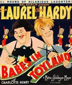 Based on Victor Herbert's popular 1903 operetta Babes in Toyland,[2] the film was produced by Hal Roach, directed by Gus Meins and Charles Rogers,[3] and distributed by Metro-Goldwyn-Mayer. There are two computer-colorized versions between The Samuel Goldwyn Company in 1991 and Legend Films in 2006.[4]