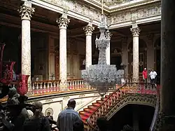 The Imperial Era ended in 1870 with the defeat of Napoléon III. Influences outside France began to have a stronger influence on Baccarat's work during this era, particularly imports from Japan. The world's largest chandelier and a staircase lined with a Baccarat crystal balustrade adorn the Dolmabahçe Palace in Istanbul. Strong growth continued in Asia for Baccarat. Baccarat has become quite famous at the royal houses. The queen of Portugal, for example, commissioned for her private collection decorative pieces and tableware (currently exhibited in the Ajuda National Palace).