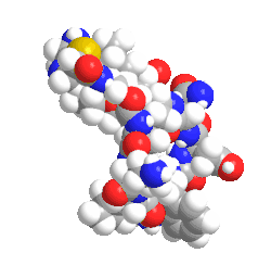 Bacitracin[1] is a polypeptide antibiotic. It is a mixture of related cyclic peptides produced by Bacillus licheniformis bacteria, that was first isolated from the variety "Tracy I" (ATCC 10716) in 1945.[2] These peptides disrupt Gram-positive bacteria by interfering with cell wall and peptidoglycan synthesis.