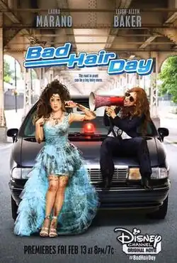 Bad Hair Day is a 2015 crime comedy film released as a Disney Channel Original Movie which premiered on February 13, 2015, starring Laura Marano and Leigh-Allyn Baker.[2] The story centers on 16-year-old Monica Reeves, who is running for Prom Queen at her high school. One day, she wakes up with crazy hair after combining loads of different products. But Monica soon has bigger things to worry about when ex-police Lieutenant Elizabeth "Liz" Morgan arrives at Monica’s door in search of a $7 million diamond necklace. The two become unlikely friends as they race to fix Monica’s hair for prom and protect the necklace from falling into the hands of a world-renowned jewel thief, Pierce Peters.
