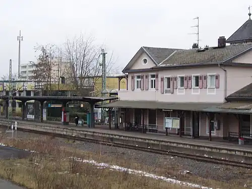 Bad Soden (Taunus) station is the northern terminus of the Soden Railway (German: Sodener Bahn) in the German state of Hesse. It is also the northern terminus of line S3 of the Rhine-Main S-Bahn over the Limes Railway (Limesbahn).