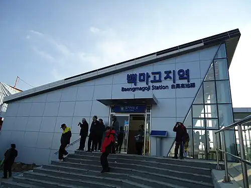 Baengmagoji station is a railway station on the Gyeongwon Line in South Korea. The station opened on 20 November 2012. This station is named after Baengmagoji, the site where the Battle of White Horse took place in 1952, during the Korean War.