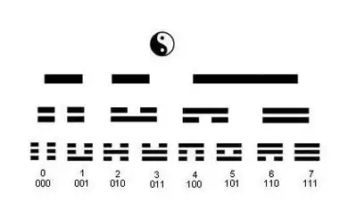 - ^ "Understanding Bagua sequence" (December 6, 2015) Shanghai Daily. Quote: "Leibniz came up with the ID number of each 3-yao gua's based on the position of yao from top down to base. He defined yang yao (whole line) as 1 and yin yao (broken line) as 0. Here are some examples according to Leibniz-Shao Yong approach. Mountain (☶) can be converted to 100. [...]"