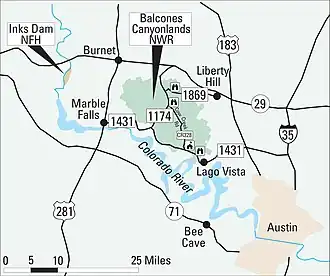 - ^ United States Fish and Wildlife Service. "Visit". Balcones Canyonlands National Wildlife Refuge. Retrieved March 20, 2010.