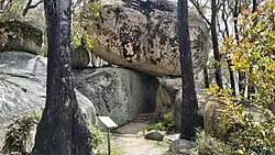 Just off the main road from Tenterfield to the park is Thunderbolt's Hideout, a set of caves and overhanging granite rocks. It was thought to have been used by bushranger Captain Thunderbolt. A little further along the same road are some historic World War II tank traps.