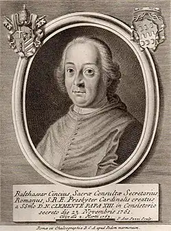 - ^ a b c d Miranda, Salvador. "CENCI, iuniore, Baldassare (1710-1763)". The Cardinals of the Holy Roman Church. Florida International University. OCLC 53276621. Retrieved December 29, 2019.